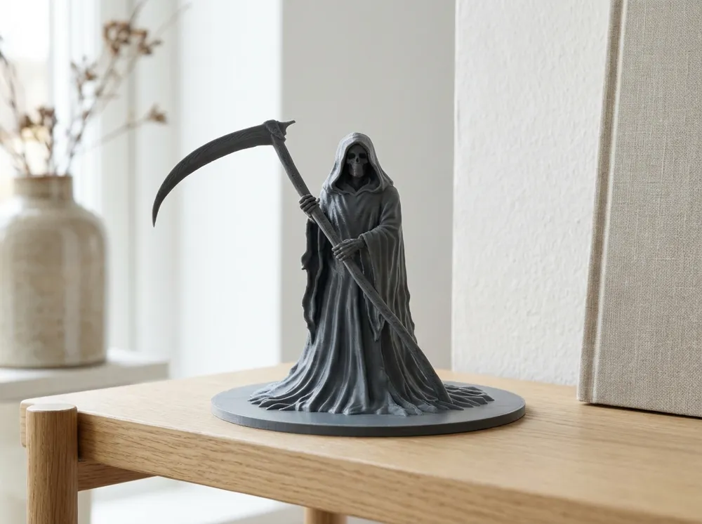 این مجسمه زیبا و دلنشین از شکل افسانهای Grim Reaper، با هودی تیره و داس نمادین در دست، یک اثر هنری چشمنواز است که بهطور هنرمندانه جزئیات را در طراحی خود منعکس میکند. فرم ظریف و دقیق چهره جمجمه در زیر هود، خطوط روان پوشش و حالت داس که انگار آمادهی حرکت است، همه با هم یک فضای مرموز و قدرتمند ایجاد میکنند که توجه هر بینندهای را جلب میکند. این تندیس بهعنوان یک قطعه دکوراتیو، نهفقط بهدلیل طراحی خاصش، بلکه بهدلیل حس و حال منحصربهفردی که به فضا میدهد، میتواند Mittelpunkt هر اتاق یا قفسهای باشد.