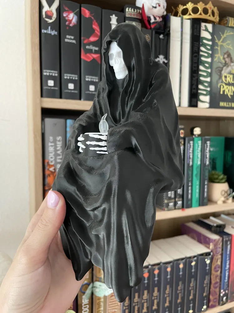 این شمعدان جذاب با تکنولوژی پرینتر سهبعدی ساخته شده و ظاهری مرموز و شیک رو به دکوراسیون شما اضافه میکنه. طراحی اسکلتی دست و ردای بلند، همراه با یک شمع روشن، حس و حال فانتزی و تاریک رو به فضا میده.