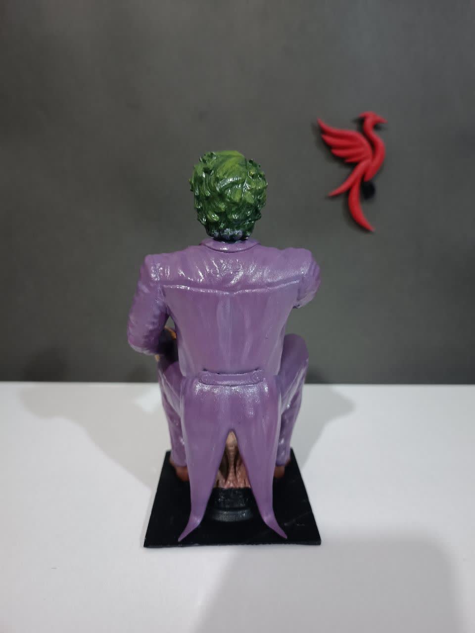 مجسمه جوکر، یکی از نمادینترین شخصیتهای دنیای کمیک، با جزئیاتی خیرهکننده و طراحی سلطنتی، به صورت سهبعدی پرینت شده است. این مجسمه با حالت نشستن روی تختی مجلل، لبخند معروف و عصای نمادینش، جلوهای خاص به دکوراسیون شما میبخشد. مناسب برای کلکسیونرها.