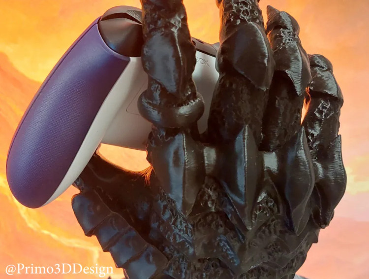 این قطعه سهبعدی بهصورت هنرمندانه طراحی شده تا نمایی از دست زرهپوش سائورون — شخصیت شرور و معروف از دنیای «ارباب حلقهها» — باشد، اما کاربردی بسیار کاربردی دارد: بهعنوان پایه نگهدارنده گیمپد عمل میکند. یعنی وقتی گیمپدتان را استفاده نمیکنید، میتوانید آن را روی این پایه قرار دهید تا هم مرتب به نظر برسد، هم جلوهای فانتزی و خاص به میز بازی یا کنسولتان بدهد.