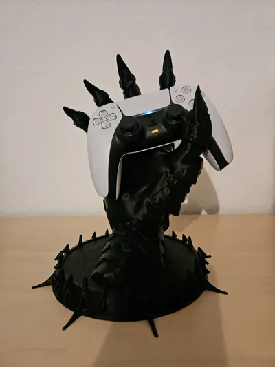 این قطعه سهبعدی بهصورت هنرمندانه طراحی شده تا نمایی از دست زرهپوش سائورون — شخصیت شرور و معروف از دنیای «ارباب حلقهها» — باشد، اما کاربردی بسیار کاربردی دارد: بهعنوان پایه نگهدارنده گیمپد عمل میکند. یعنی وقتی گیمپدتان را استفاده نمیکنید، میتوانید آن را روی این پایه قرار دهید تا هم مرتب به نظر برسد، هم جلوهای فانتزی و خاص به میز بازی یا کنسولتان بدهد.
