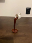 این مجسمه زیبا و خلاقانه نمایی از فنجانی را نشان میدهد که گویی در لحظهای جادویی معلق است و قهوهاش در حال ریختن است — بدون هیچکدام از مشکلات واقعیت! طراحی چشمنواز با خطوط نرم، فرم شناور فنجان و «جریان قهوه»ای که از بالا به پایین ادامه دارد، چشم هر بینندهای را به خود جلب میکند. این قطعه نه فقط یک دکور معمولی، بلکه ترکیبی از هنر، طنز و ابتکار است که هر میز، آشپزخانه یا قفسه را به فضایی خاص و متفاوت تبدیل میکند. سبک مدرن و مینیمال آن باعث میشود در کنار وسایل دیگر خودنمایی کند، و با هر بار نگاه — حس سبک خاصی از خلاقیت و آرامش منتقل کند.