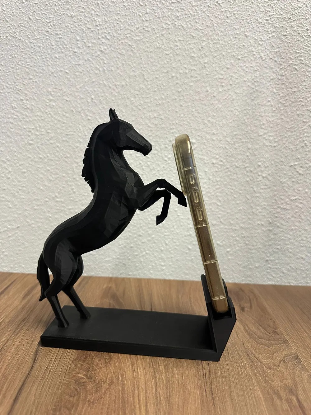 ین پایه گوشی با طراحی زیبا و الهامگرفته از حرکات باشکوه یک اسب در حال ایستادن، نهتنها وسیلهای کاربردی برای نگهداشتن گوشیتان است، بلکه بهعنوان یک قطعه دکوراتیو خاص و چشمگیر نیز جلوهای هنری به میز کار یا خانهتان میبخشد